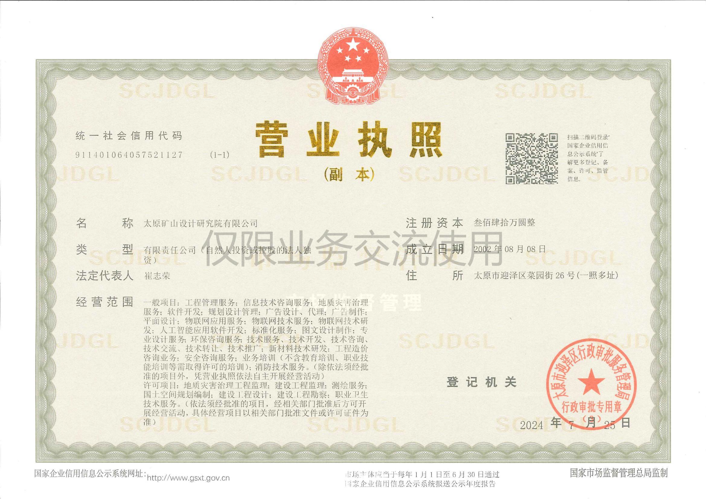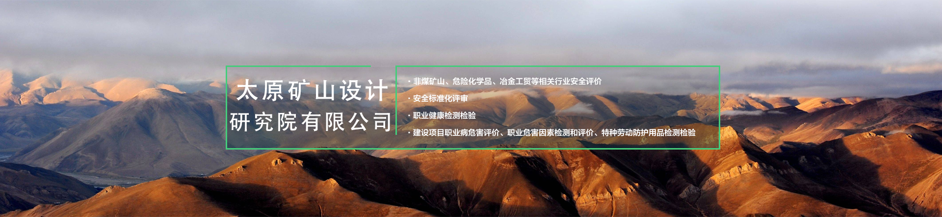 公司主要從事礦山采選尾工程設(shè)計(jì)、智能化及自動(dòng)化礦山、建設(shè)綠色礦山、工程技術(shù)咨詢、規(guī)劃設(shè)計(jì)管理、施工勞務(wù)分包、土地規(guī)劃、地質(zhì)災(zāi)害治理服務(wù)、安全生產(chǎn)技術(shù)服務(wù)、軟件開發(fā)及測繪服務(wù);煤礦、非煤礦山設(shè)計(jì);煤礦、非煤礦山、危險(xiǎn)化學(xué)品安全評(píng)價(jià)(業(yè)務(wù)范圍:煤炭開采業(yè);金屬、非金屬及其他礦采選業(yè);石油加工業(yè),化學(xué)原料、化學(xué)品及醫(yī)藥制造業(yè));非煤礦山、冶金等工商貿(mào)企業(yè)、危險(xiǎn)化學(xué)品從業(yè)單位安全生產(chǎn)標(biāo)準(zhǔn)化評(píng)審;公共場所衛(wèi)生、生活飲用水、公共場所集中中央空調(diào)通風(fēng)系統(tǒng)的檢驗(yàn)、檢測、評(píng)價(jià);職業(yè)健康檢測檢驗(yàn);建設(shè)項(xiàng)目職業(yè)病危害評(píng)價(jià)、職業(yè)危害因素檢測與評(píng)價(jià);安責(zé)險(xiǎn)技術(shù)服務(wù);業(yè)務(wù)培訓(xùn)等工作。